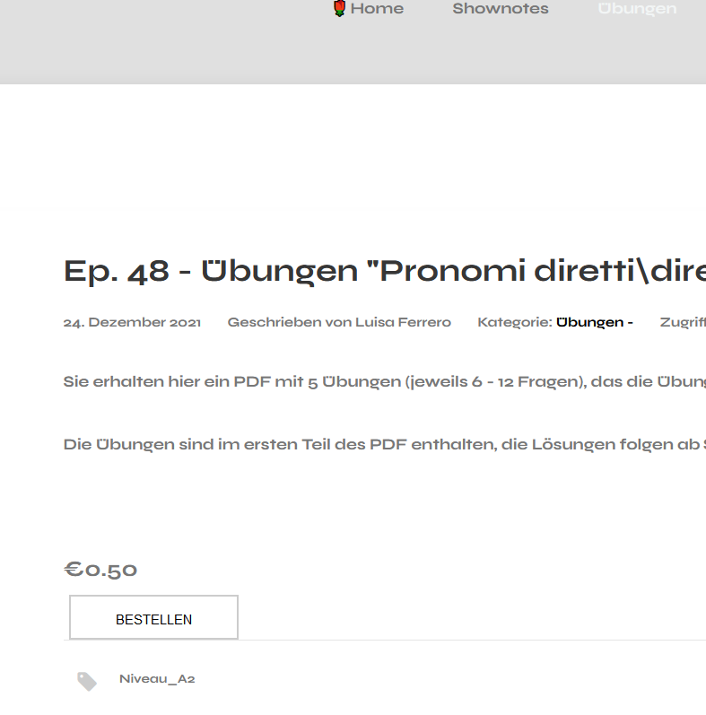 Dann ist es möglich, sich im Kundenkonto anzumelden und die Materialien auf Ihr Gerät herungerzuladen. Wie das genau funktioniert, ist hier erklärt: https://premium.il-tedesco.it/index.php/shownotes/58-anleitung-download-ihrer-materialien-nach-dem-kauf