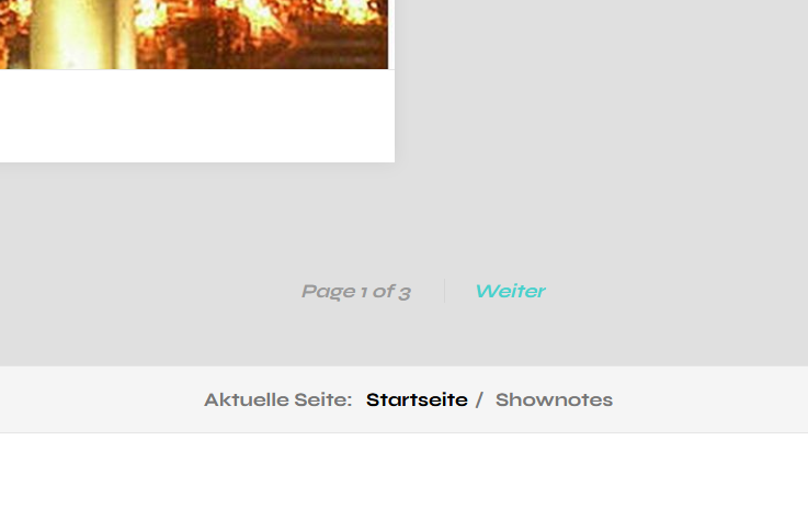In der Gallerie der Artikel sehen Sie das Episodenbild sowie den Episodentitel. Am Ende der Seite mit den Artikeln finden Sie die Paginierung, mit der Sie weitere Seiten mit weiteren Artikeln aufrufen können. Das englische "Page" zeigt die Seite auf der Sie sich gerade befinden und die Gesamtzahl der vorhandenen Artikelseiten. (Page 2 of 3 = Sie befinden sich auf Seite 2 von insgesamt 3 verfügbaren Seiten). Mit "Weiter" gelangen Sie auf die nächste Seite.