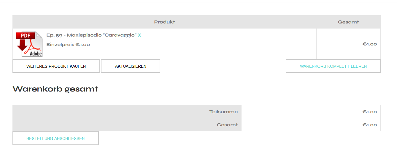 - Nachdem alle Artikel, die Sie kaufen möchten, im Warenkorb liegen, Warenkorb aufrufen und die Bestellung komplettieren und abschicken.